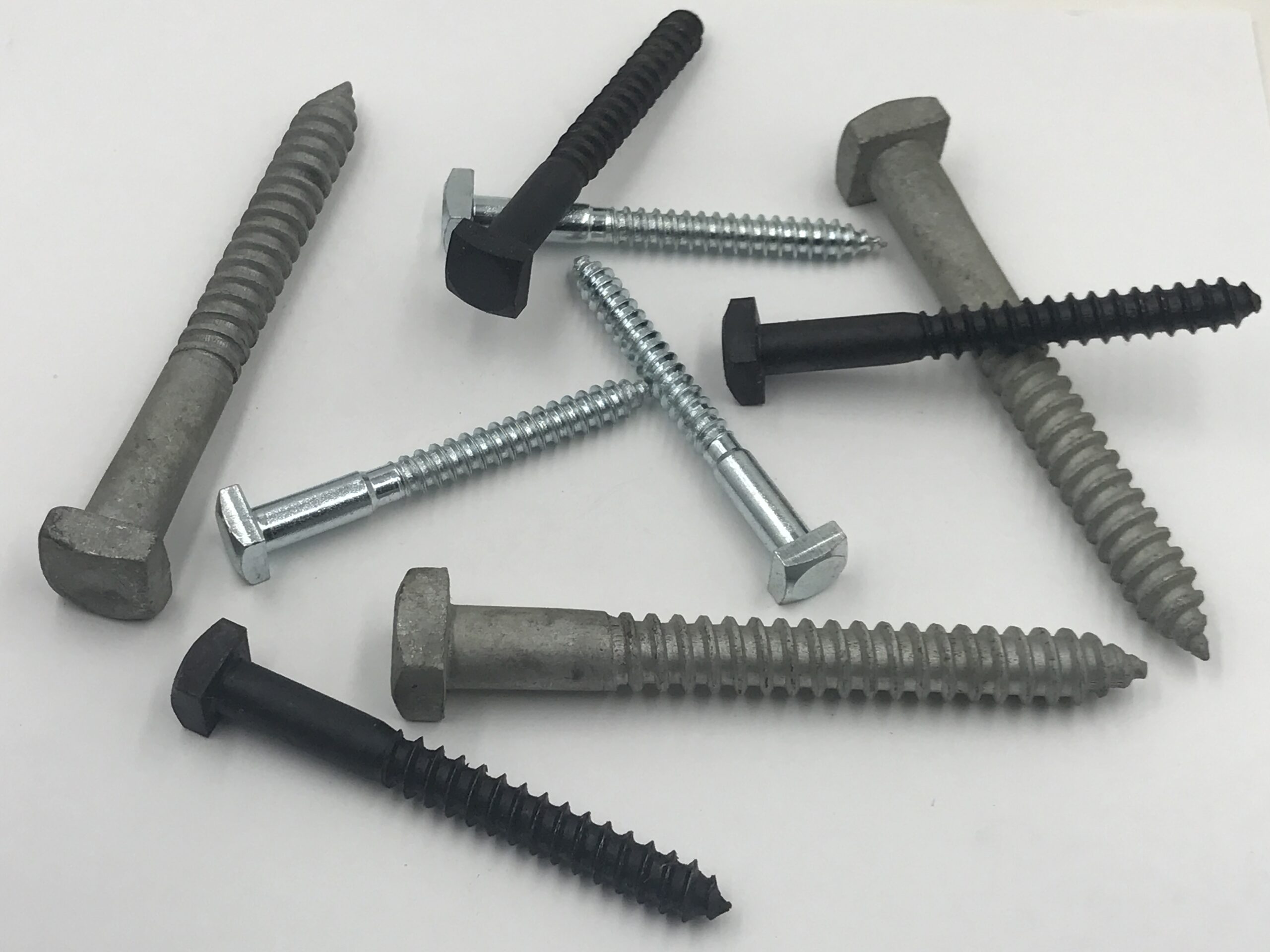 Hex/Square Lag screws with hex or square head and spaced threads.